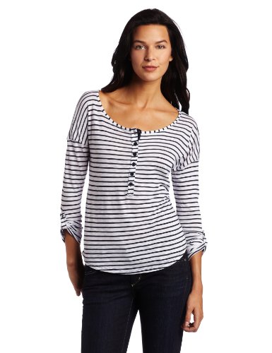 @@@ Product Details : Splendid Women's Skinny Venice Slub Stripe Henley Top, WhiteX-Small