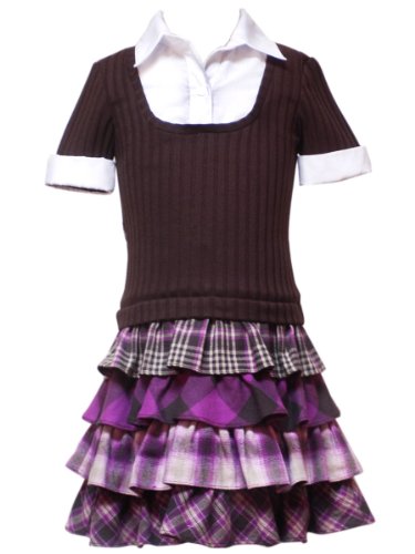 @@@ Product Details : Rare Editions Girl's 7-16 Four Tier Short Sleeve Sweater Dress, Brown, 7