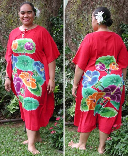 Buy Now! Caftan - Batik Full Size Individually Hand Painted Hawaiian Aloha Floral Caftan/Kaftan in Fuchsia - XL