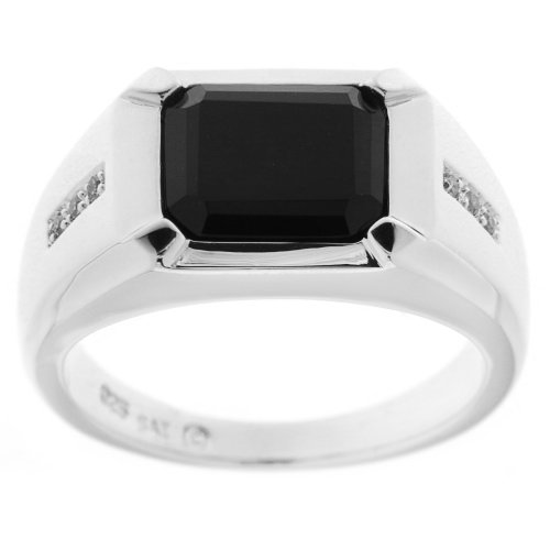 @@@ Product Details : Sterling Silver Faceted Onyx and Diamond Men's Ring (0.048 cttw, I-J Color, I2-I3 Clarity), Size 10