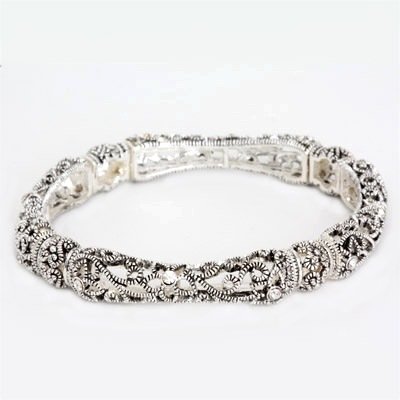 Review : Antique Silver Marcasite Style Stretch Bracelet Fashion Jewelry