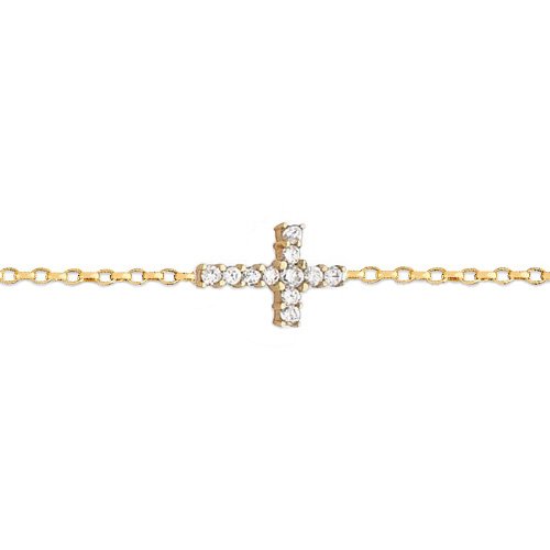 @@@ Product Details : Gold Vermeil Diamond CZ Sideways Horizontal Cross Charm Bracelet 8"
