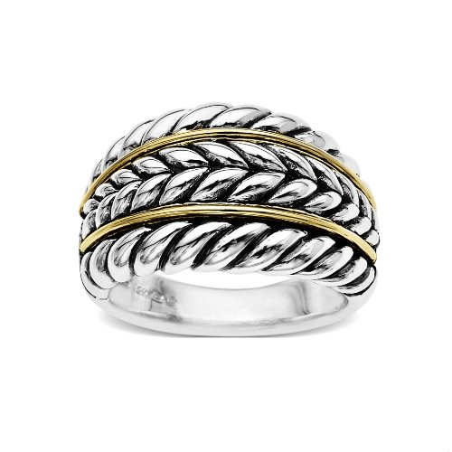 @@@ Product Details : Sterling Silver and 14k Yellow Gold Textured Ring, Size 6