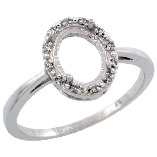 Buy Now! 10k White Gold Semi-Mount ( 8x6 mm ) Oval Stone Ring w/ 0.007 Carat Brilliant Cut Diamonds, 7/16 in. (11mm) wide, size 5.5