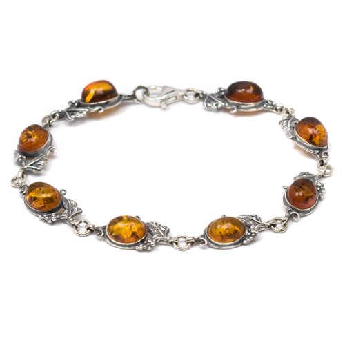 @@@ Product Details : Certified Genuine Baltic Honey Amber and Sterling Silver Antique Reproduction Style Grapevine Bracelet, 8"